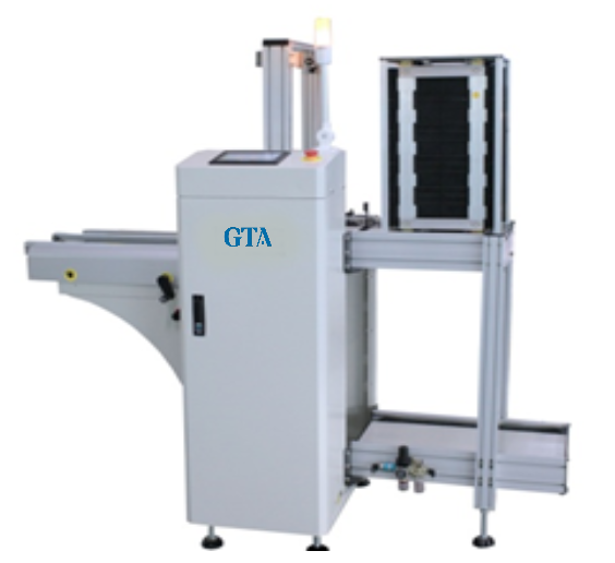 功能:用于SMT生产线终端,收回多面PCB。接到上位机出板信号后,一件一件接收PCB板同时把PCB板推入料框收纳好。